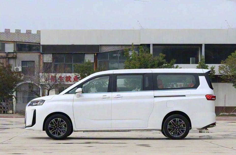 车身侧面,方正的MPV轮廓,一条腰线贯穿侧面。新车配备密条辐铝合金轮圈。车身尺寸方面,新车的长宽高分别为5317×1870×1955mm,轴距为3200mm。提供7座和9座两种座椅布局。配备侧滑门,支持可选装电动侧滑门配置,搭配整体上掀式尾门。