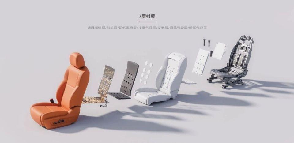 第二排为双独立式座椅,具备电动调节和腿托功能。配置方面,根据配置不同,新车还提供后排小桌板、2.2kW对外放电、Jamo(尊宝)音响系统、二排座椅通风/加热/按摩功能。